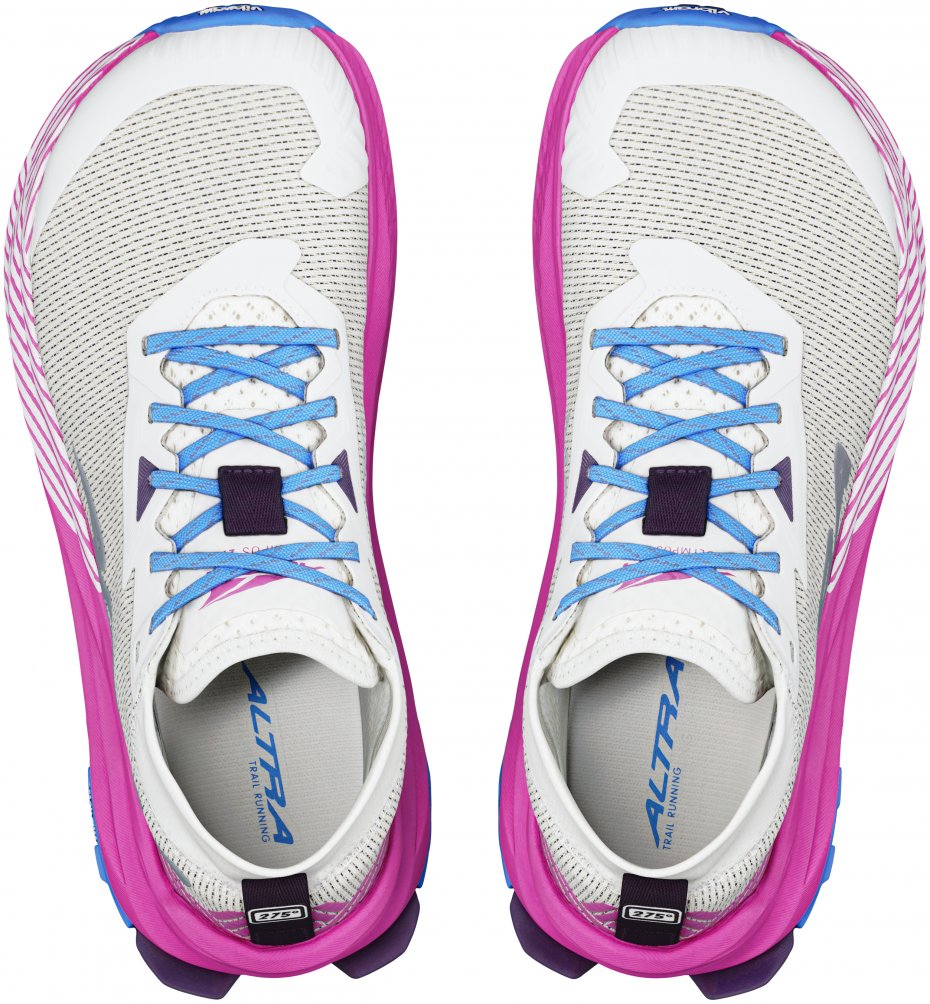 Based on the popular Olympus 6, the Altra Olympus 275 Women's shoe is designed to be a lightweight and durable distance dominator. Vibram's Megagrip rubber and compression-molded EVA midsole from the Olympus 6 carry over, giving you the same reliable traction and plush underfoot cushioning. The upper is where the 275 strides ahead. Made from Matryx fabric, it is woven with Kevlar fibers to improve longevity and abrasion resistance while also shedding grams. An added scree-sleeve around your ankle acts as a gaiter, helping keep rocks and other trail debris from worming into your shoe. Using Altra's Original Footshape, the Olympus 275 has a roomy toebox that gives your feet space to splay naturally for more comfortable running. Whether for daily running or distance racing, the Women's Olympus 275 is a high-cushion, mile-eating machine that will keep your feet smiling.