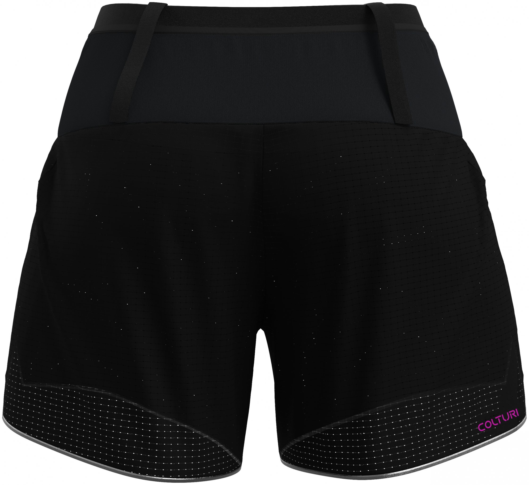 The Colturi Voltage Short delivers the perfect blend of performance, comfort, and versatility needed to tackle big runs in the mountains. Crafted from an innovative micro-perforated fabric, these shorts offer exceptional lightness and breathability to keep you cool through every stride. The multifunctional waistband with stretch pockets provides a supportive yet flexible fit, featuring an adjustable front drawstring and a compact rear pocket for small essentials. A seamless microfiber inner brief with a silk gusset and flatlock seams prevents chafing, ensuring comfort while you're deep in the pain cave. Reflective tape along the hems boosts visibility in low-light conditions, while belt loops accommodate trekking poles for added versatility. The Voltage Short combines technical performance and functional design for those who demand both freedom and precision in the mountains.