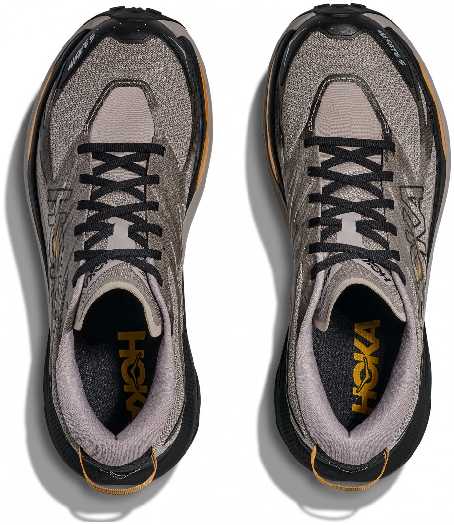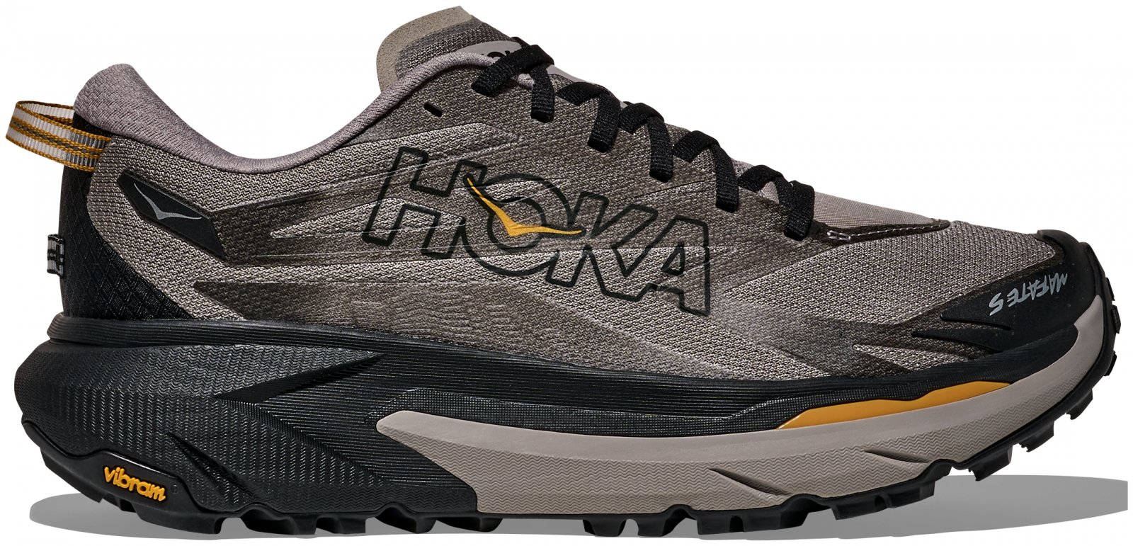 Hoka didn't set out to reinvent the wheel entirely with the Mafate 5, but several thoughtful and quality improvements were made while the original theme remains. A warp-knit jacquard upper with anti-fray treatment and a stretchy Dynamic Vamp increases durability and all-day comfort. Newly added gaiter attachments are great insurance for long, debris-free runs because nobody wants to stop to rid themselves of that annoying pebble. The dual-density midsole has been flipped to improve the rebound and cushion, so long mileage days have never felt better. Vibram's Megagrip outsole remains, therefore, and so does increased traction in all conditions, such as muddy trails in New England or buffed trails in Colorado. The one shoe to rule them all may not exist, but Hoka's Mafate 5 is a contender.