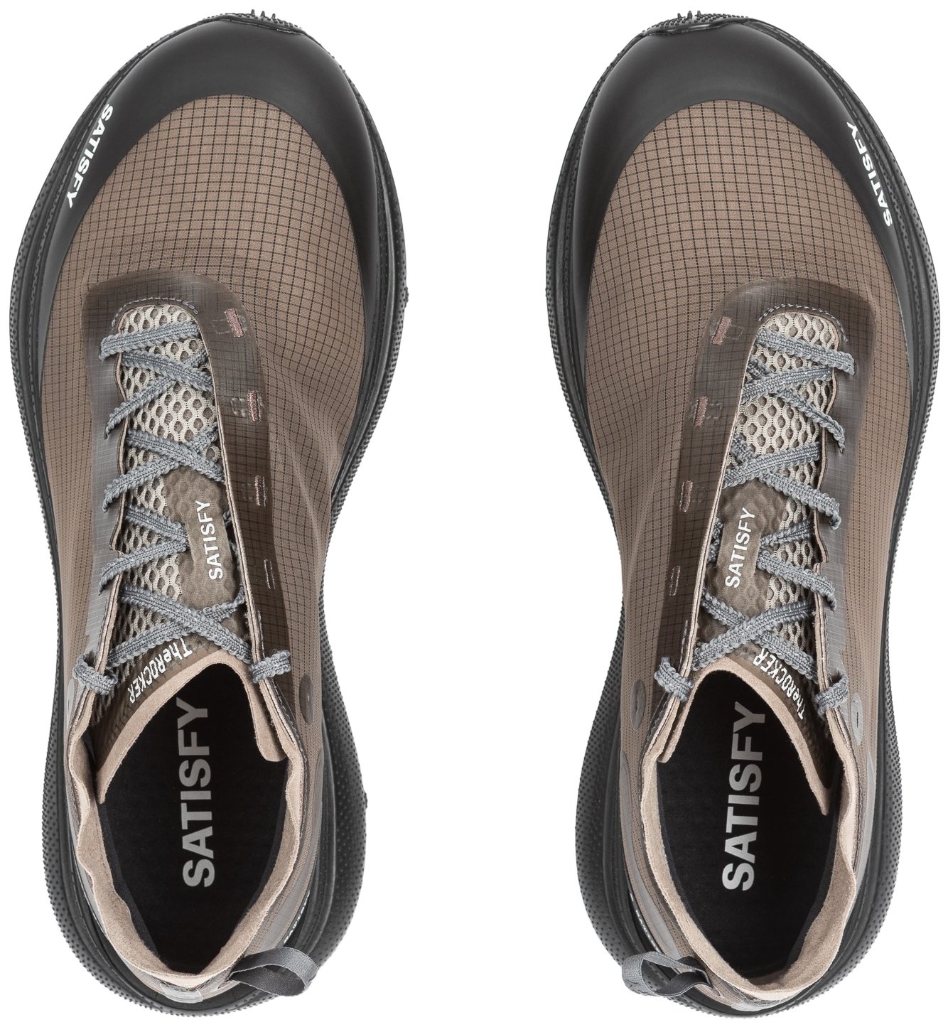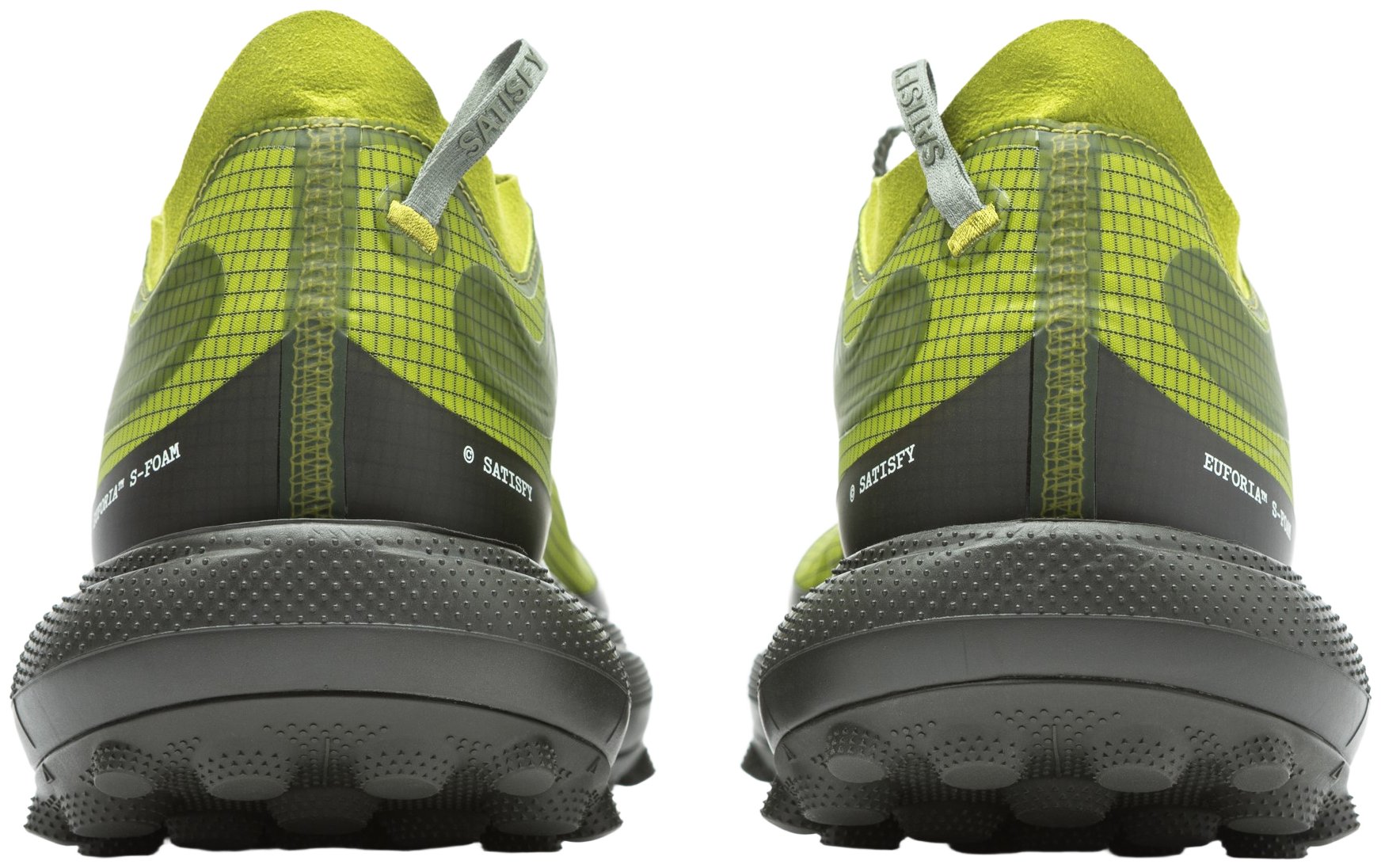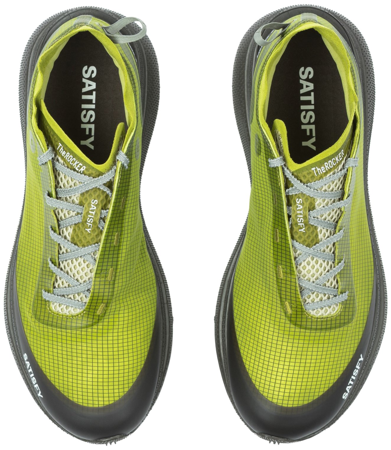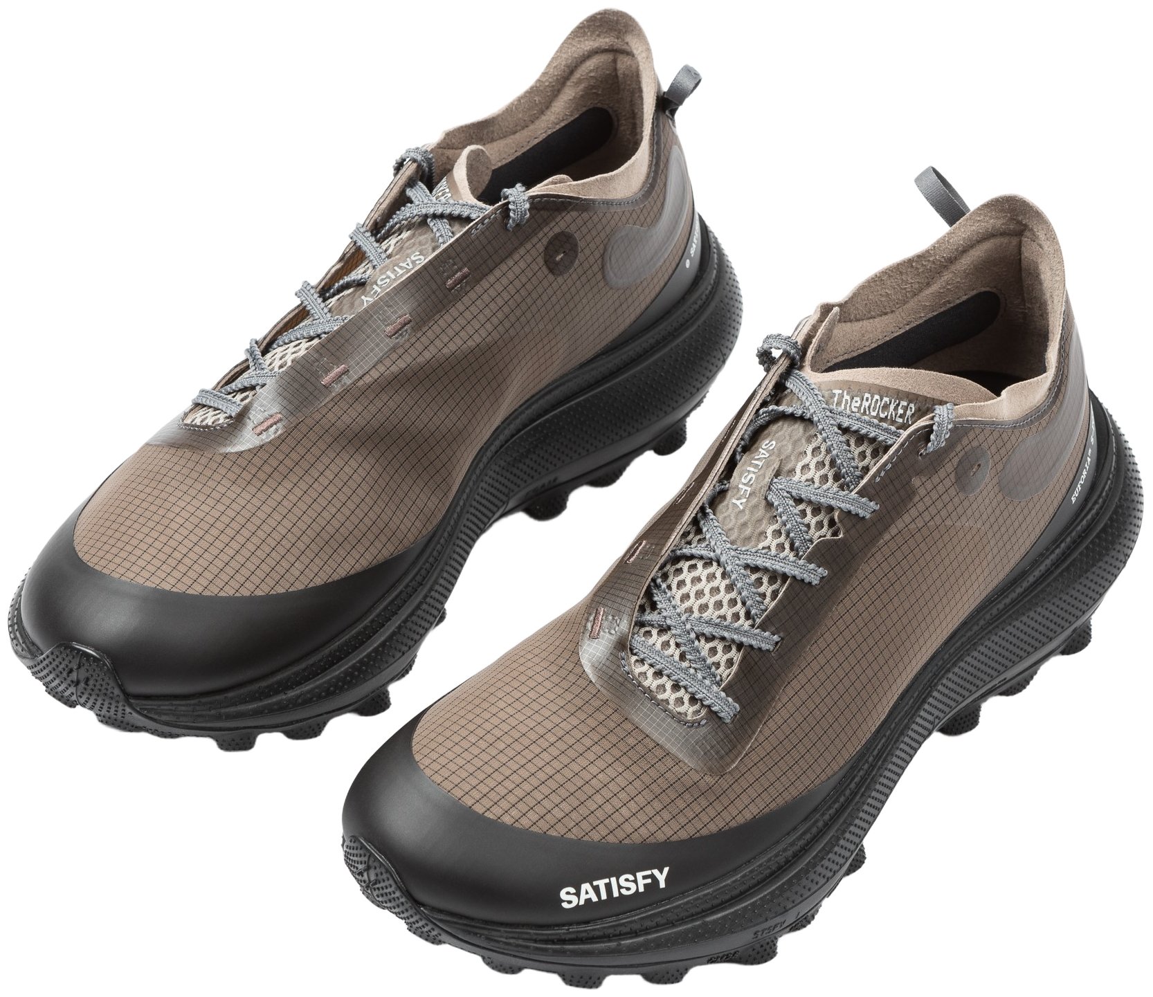 On the off-chance your desired Vibram outsole is molded after the tires on an RC Truck, try asking your manufacturer nicely. That was the exact approach that Satisfy took with TheRocker, their foray into a trail shoe, and Vibram satisfied Satisfy's proprietary demands. The unique Megagrip + Litebase outsole performs better than expected across a wide range of surfaces, so it's sure to be a winner on your home trails. Sandwiched between the rubber and the upper is the debut of Euforia S-Foam, a PEBA and EVA super foam that cushions as well as it rebounds. The upper is highly breathable and constructed from Nova Nylon 66, which boasts a high strength-to-weight ratio and excellent abrasion resistance. Pair that with a 5mm drop and a low weight, and you have a long-distance, nicely cushioned, and techy-terrain-busting tool at your disposal. TheRocker may be Satisfy's first step into their own trail running footwear, but SkyRun hopes there will be many more offerings to come.