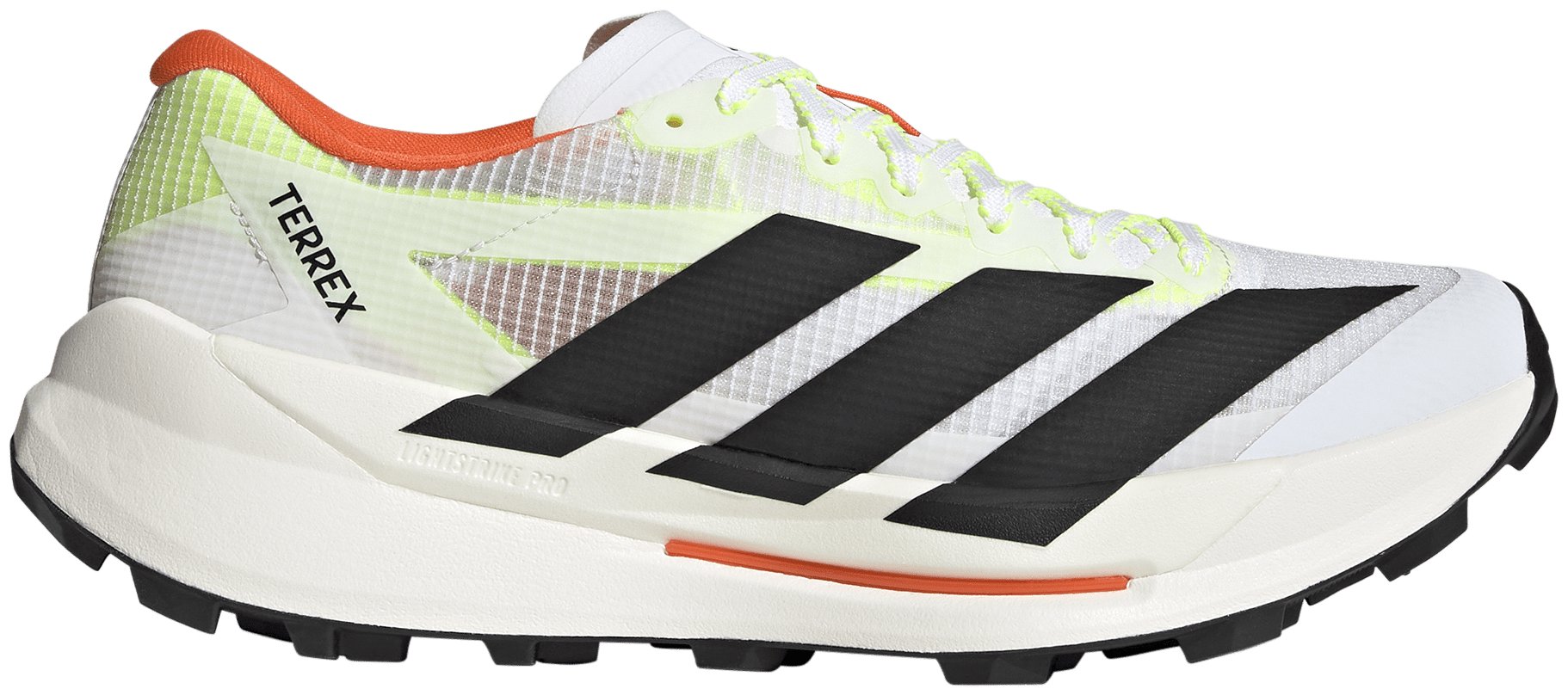 Terrex knows what it means to be fast - it's not merely speed and power, or looking suspiciously like Kipchoge and Jornet come race day. Getting faster starts with baby steps and depends on training, and that's precisely what the Agravic TT is for! As a rockered, technical shoe, the Agravic TT is designed as a complementary shoe to the Agravic Speed Ultra 2, and to stand on its own podium for race day. A Continental rubber outsole makes for rugged treads, and Lightstrike 3.0 foam supports a Lightstrike Pro midsole, providing high shock absorption and energy return with each step. A polyamide rock plate adds energy return and helps protect key areas of your feet from fatigue. Couple the rock plate with a polyamide reinforced upper, and you now gain the benefit of an abrasion-resistant, breathable, and structurally supportive upper, perfect for high-intensity and technical terrain. To help keep dust and debris out, a sock liner is stitched into the shoe's collar. It can be a real bummer when your fastest pair of shoes, or your feet, get hammered on long days, but the best way to race in a rockered shoe is to train in one. Help complement your training with the Agravic TT, a more padded, technical training option.